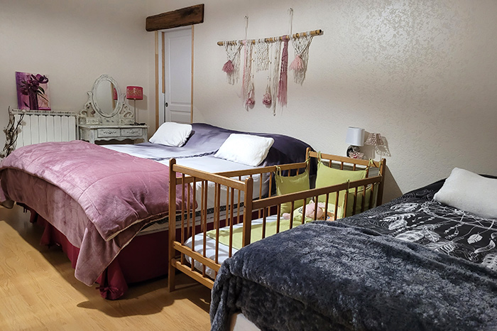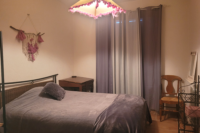 Au 1er étage de cette maison, une chambre familiale avec 1 chambre (3 lits 0,90 qui peuvent être rapprochés), 1 chambre avec 1 lit 180. Chaque chambre a une salle de bain privative et des toilettes privatifs. Sur le palier de cet étage, espace bibliothèque. Au rez-de-chaussée salle à manger commune, salon commun accessible. A l’extérieur, piscine (10x5x1,50) avec bains de soleil.
